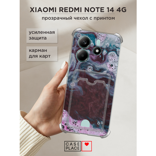 Чехол на Xiaomi Redmi Note 14 4G (Редми Нот 14 4G) с картой и принтом Мыльная пена