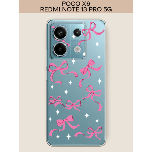Силиконовый чехол "Милые ленточки" на Xiaomi Poco X6 / Поко X6, прозрачный