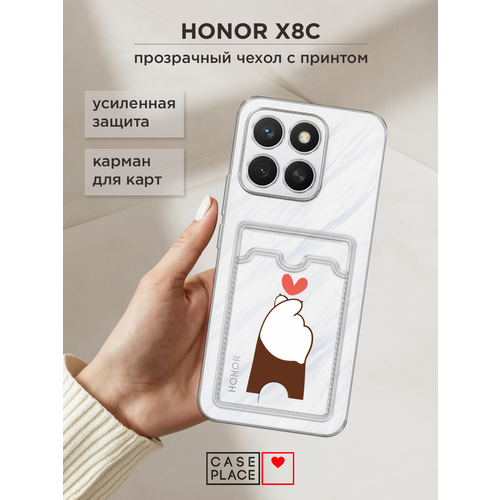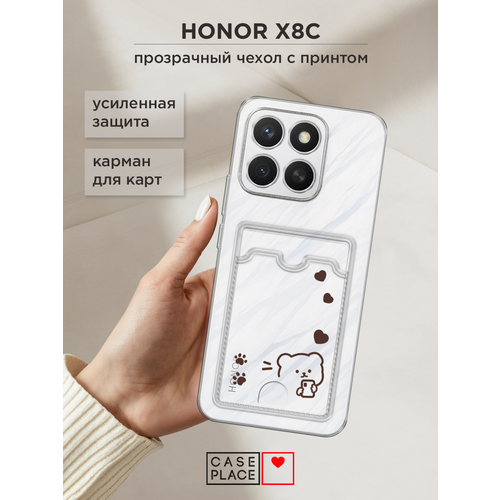 Чехол на Honor X8c (Хонор X8c) с картой и принтом Мишка и сердечки