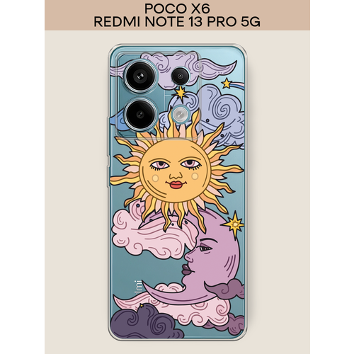 Силиконовый чехол "Sun and Moon" на Xiaomi Poco X6 / Поко X6, прозрачный