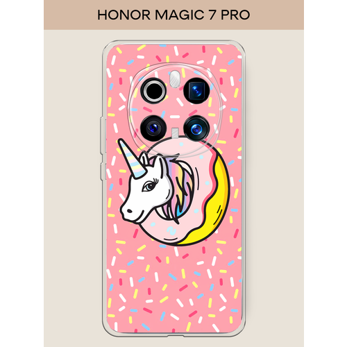 Чехол на Honor Magic 7 Pro / Хонор Мэджик 7 Про с принтом Единорог в пончике