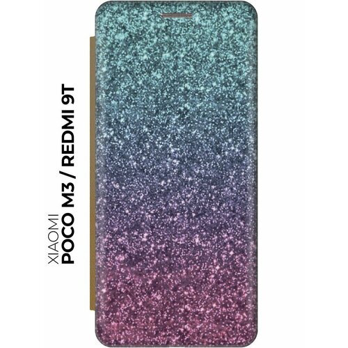 Чехол-книжка Сине-розовые блестки на Xiaomi Redmi 9T / Poco M3 / Сяоми Поко М3 / Сяоми Редми 9Т золотой