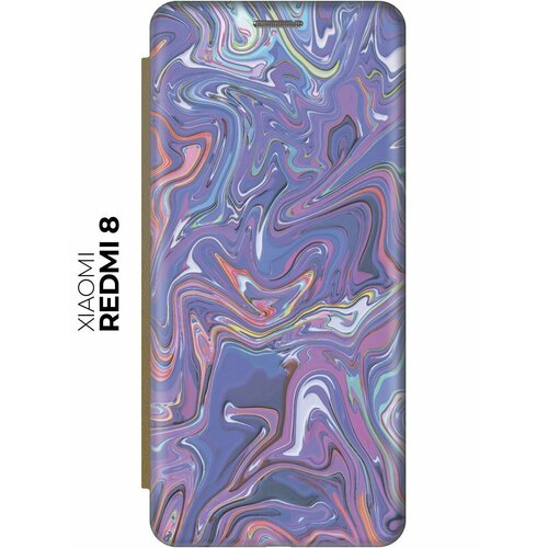 Чехол-книжка Сиреневые разводы на Xiaomi Redmi 8 / Сяоми Редми 8 золотой