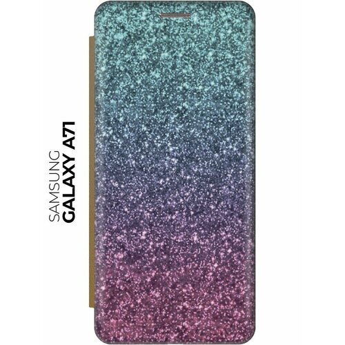 Чехол-книжка Сине-розовые блестки на Samsung Galaxy A71 / Самсунг А71 золотой