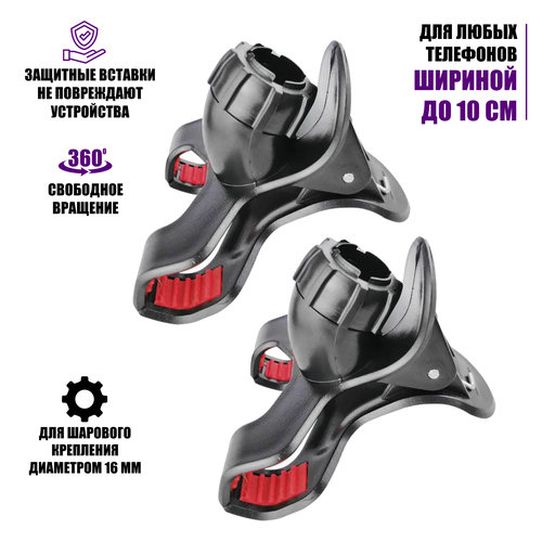 Держатель прищепка для смартфона на шаровое крепление, 2 шт