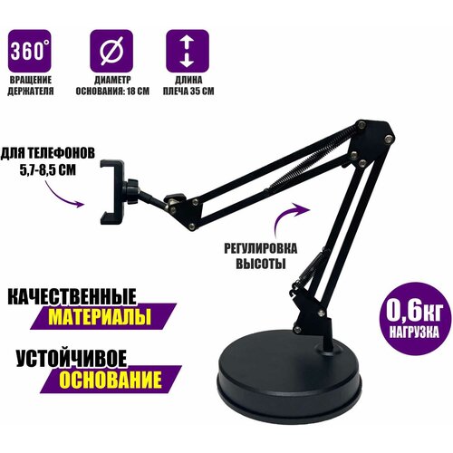 Настольная стойка усиленный пантограф ST-345 с держателем для телефона 5.5-9 см и планшета 11-18 см с шарнирным креплением и нагрузкой до 1.6 кг