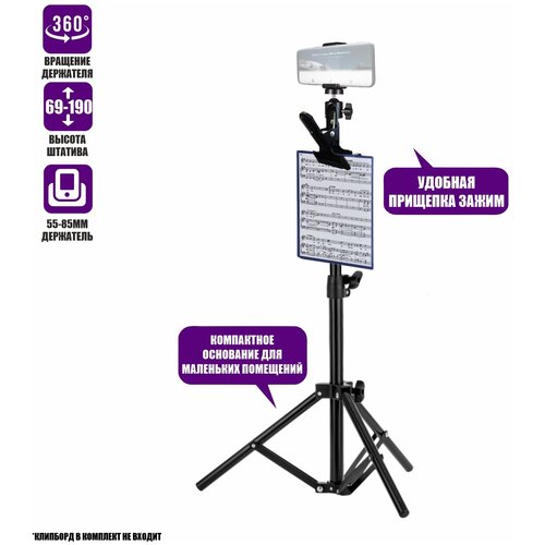 Напольная стойка JBH-DP с держателем для телефона на шарнире и с прищепкой-зажимом