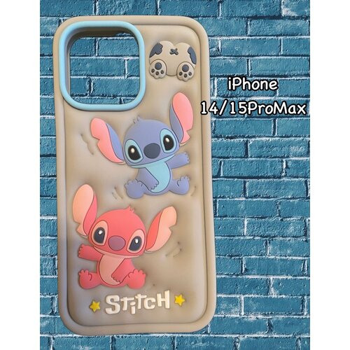 Чехол на Айфон 14 / 15 Про Макс Серый силиконовый со стичами Stitch