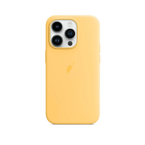 Чехол силиконовый Магсейф для iPhone 14 Pro Sunglow с анимацией NFC, Silicone case Магсейф для айфон 14 Про - Лимонный