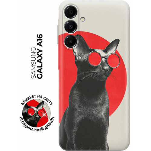 Силиконовый чехол на Samsung Galaxy A16 с принтом "Кот-интрига на красном фоне"