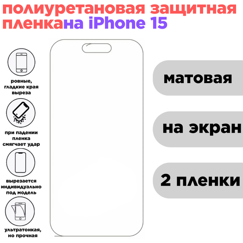 Комплект 2 шт. Гидрогелевая полиуретановая защитная пленка для iPhone 15, матовая