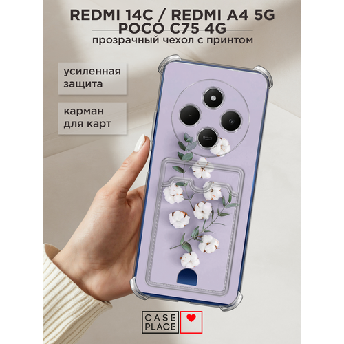 Чехол на Xiaomi Redmi 14C/Poco C75 4G/Redmi A4 5G/Poco M7 5G (Сяоми Редми 14C/Поко C75 4G/Редми А4 5G/Поко M7 5G) с картой и принтом Веточка хлопка