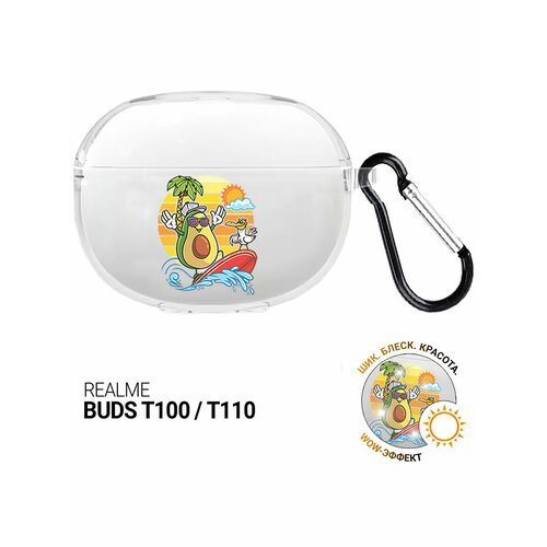 Чехол на Realme Buds T100 / T110 с принтом "Avocado Surfer" прозрачный