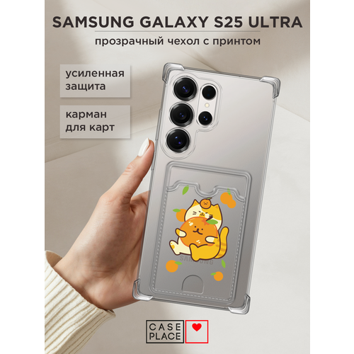 Чехол на Samsung Galaxy S25 Ultra (Самсунг S25 Ультра) с картой и принтом Корейский оранжевый котик