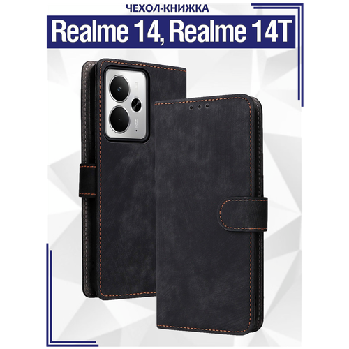 Чехол книжка для Realme 14 (5G)/ Realme 14T (5G) с магнитной застежкой / Реалми 14, Реалми 14Т c отделением под карты (черная)