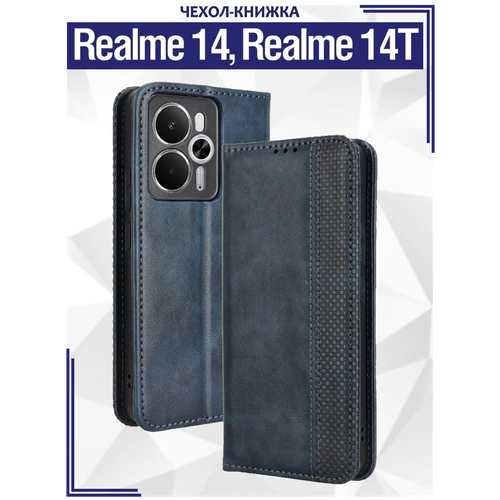 Чехол книжка для Realme 14 (5G)/ Realme 14T (5G) с магнитом и отделением под карты / Реалми 14, Реалми 14Т (синяя)