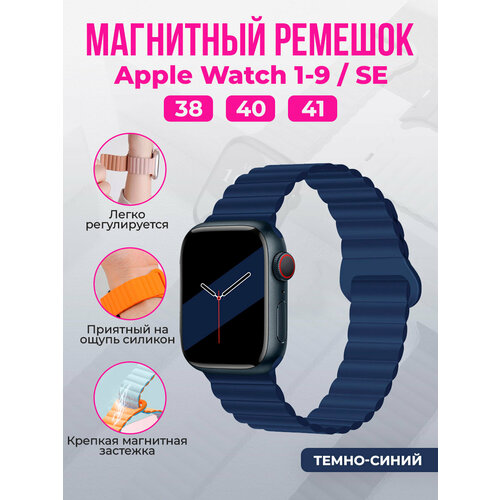 Магнитный силиконовый ремешок для Apple Watch 1-9 / SE (38/40/41 мм), темно-синий