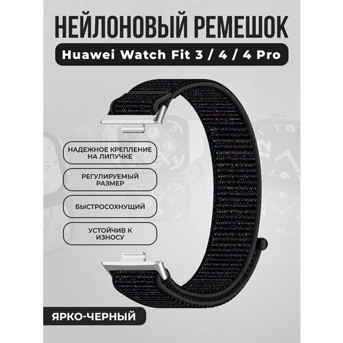 Нейлоновый ремешок на липучке для Huawei Watch Fit 3, ярко-черный