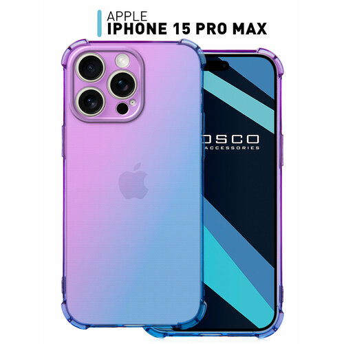 Противоударный силиконовый чехол Rosco на Apple iPhone 15 Pro Max (Айфон 15 Про Макс), прозрачный фиолетово-синий