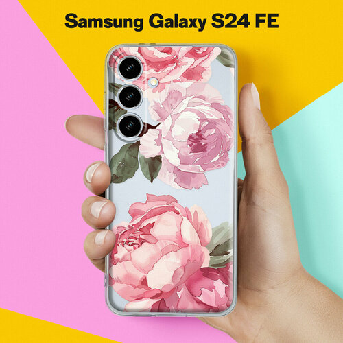 Силиконовый чехол на Samsung Galaxy S24 FE с принтом "Пионы" с прозрачными бортиками
