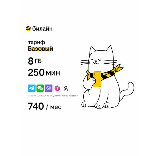Сим карта sim-карта билайн тариф "Базовый", Республика Саха, 8 ГБ, 250 мин, баланс 200 р.