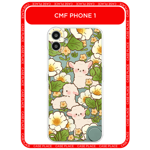 Чехол на CMF Phone 1 / CMF Фон 1 с принтом Овечки в цветах, прозрачный