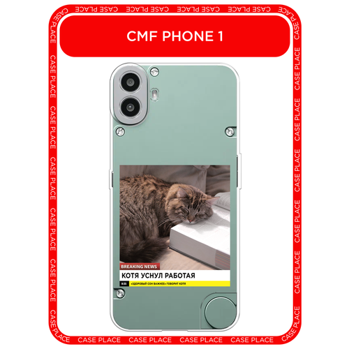 Чехол на CMF Phone 1 / CMF Фон 1 с принтом Кот уснул работая, прозрачный