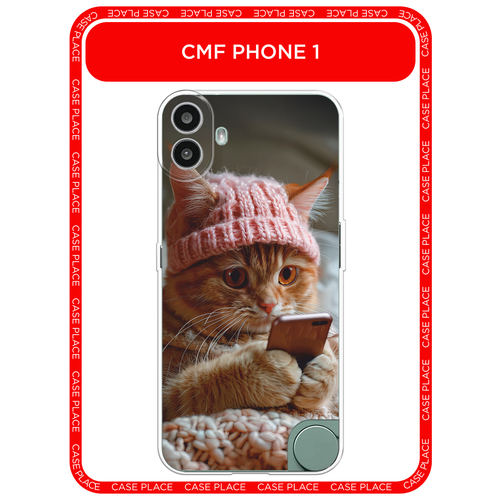 Чехол на CMF Phone 1 / CMF Фон 1 с принтом Рыжий котик с телефоном