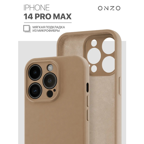 Чехол на iPhone 14 Pro Max с подкладкой из микрофибры / Айфон 14 Про Макс с поддержкой беспроводной зарядки, кофейный