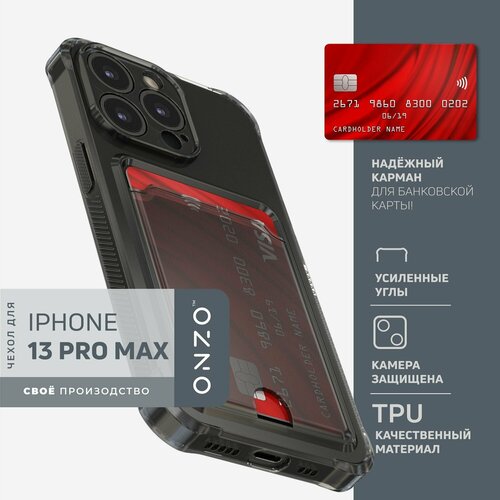 Чехол-картхолдер iPhone 13 Pro Max / Айфон 13 Про Макс, с усиленными углами, темно-прозрачный