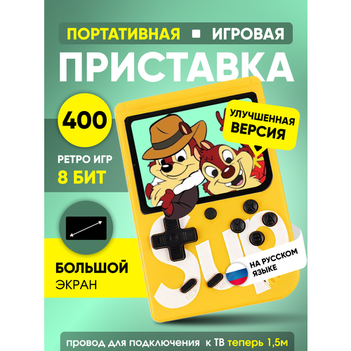 Игровая приставка SUP GAME BOX, 400 предустановленных 8-бит игр, портативная, желтая