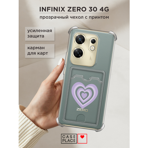 Чехол на Infinix Zero 30 4G (Инфиникс Зеро 30 4G) с картой и принтом Сиреневое сердечко