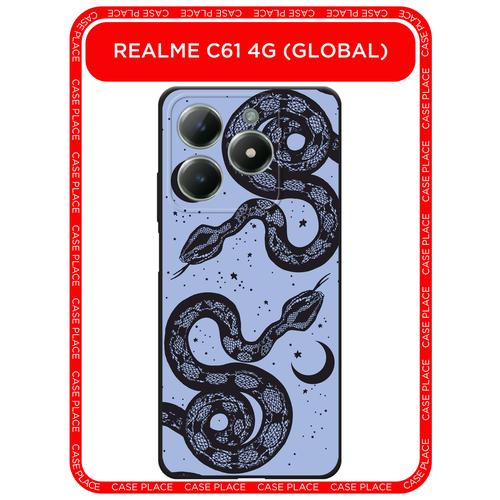 Черный матовый чехол на Realme C61 4G (Global) / Реалми C61 4G с принтом Лунные змеи
