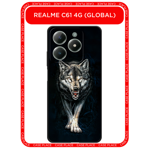 Черный матовый чехол на Realme C61 4G (Global) / Реалми C61 4G с принтом Злобный волк из ночи