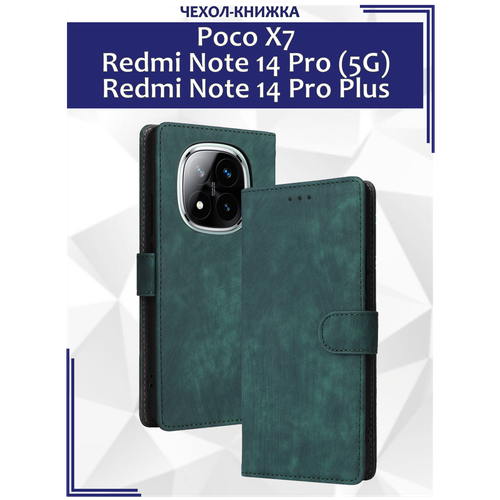 Чехол книжка для Poco X7/ Redmi Note 14 Pro (5G)/ Redmi Note 14 Pro Plus c магнитной застежкой / Поко Х7 c отделением под карты (зеленая)