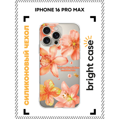 Чехол на Apple iPhone 16 Pro Max / Айфон 16 Про Макс с принтом Оранжевые цветы, прозрачный