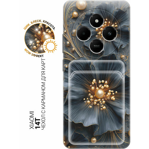Силиконовый чехол на Xiaomi Redmi 14C / Poco C75 с принтом "Мистерия теней и золота" с карманом для карты