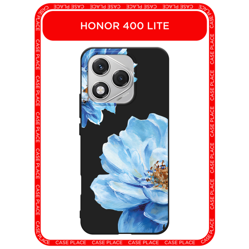 Черный матовый чехол на Honor 400 Lite / Хонор 400 Лайт с принтом Голубые клематисы