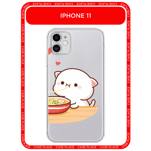 Чехол на Apple iPhone 11 / Айфон 11 с принтом Белый котик с лапшой, прозрачный