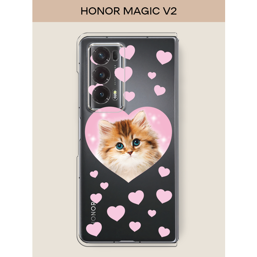 Чехол на Honor Magic V2 / Хонор Меджик V2 с принтом Котенок в сердце, прозрачный