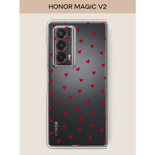 Чехол на Honor Magic V2 / Хонор Меджик V2 с принтом Red hearts, прозрачный