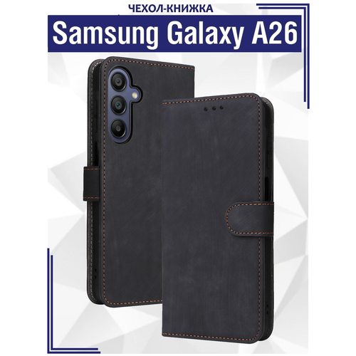Чехол книжка для Samsung Galaxy A26 c магнитной застежкой / Самсунг Галакси А26 c отделением под карты (черная)