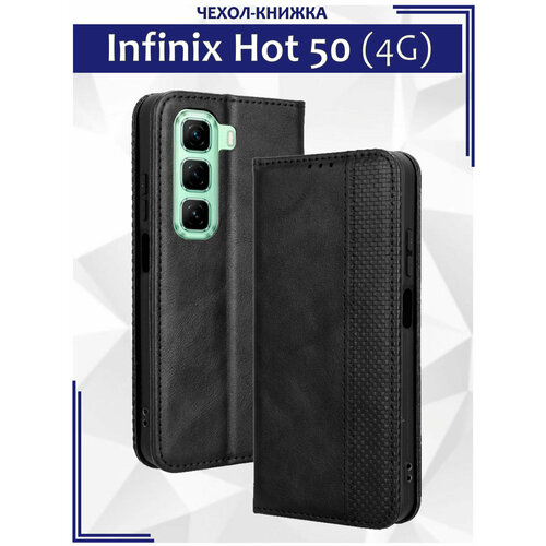 Чехол книжка для Infinix Hot 50 (4G) с магнитом и отделением под карты / Инфиникс Хот 50 (черная)