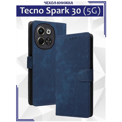 Чехол книжка для Tecno Spark 30 (5G) c магнитной застежкой / Спарк 30 c отделением под карты (синяя)