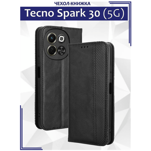 Чехол книжка для Tecno Spark 30 (5G) с магнитом и отделением под карты / Спарк 30 (черная)