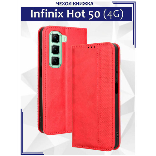 Чехол книжка для Infinix Hot 50 (4G) с магнитом и отделением под карты / Инфиникс Хот 50 (красная)
