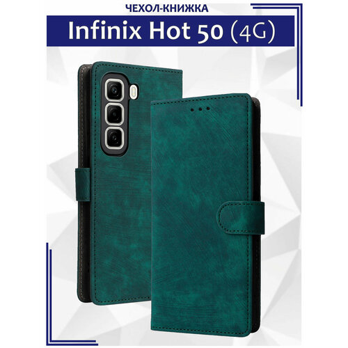 Чехол книжка для Infinix Hot 50 (4G) c магнитной застежкой / Инфиникс Хот 50 c отделением под карты (зеленая)