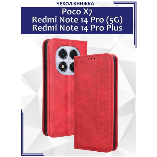 Чехол книжка для Poco X7/ Redmi Note 14 Pro (5G)/ Redmi Note 14 Pro Plus с магнитом и отделением под карты / Поко Х7 (красная)