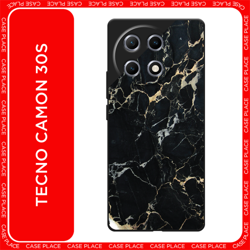 Черный матовый чехол на Tecno Camon 30S / Текно Камон 30S с принтом Черный мрамор уголок