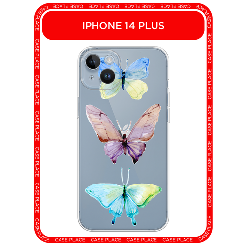 Чехол на Apple iPhone 14 Plus / Айфон 14 Плюс с принтом Акварельные бабочки, прозрачный